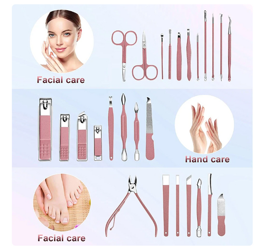 (26 PCS ) Professional Nail Clippers Pedicure Kit Nail Cutter Scissor Cuticle Nipper Nails Tool Foot Face Grooming Kit Manicure Set