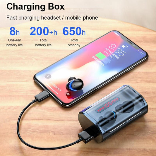 Q66 Wireless V5.0 Bluetooth Earphone HD Stereo Headphone Sports Waterproof Headset With Dual Mic and 6000mAh Battery Charge Case (AH1)((RS8)