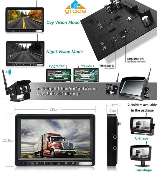 Digital Wireless Backup Camera System Kit - No Interference IP69 Waterproof + 7’’ LCD Reverse Monitor for Rv/Truck/Pickup (CT3)(1U60)