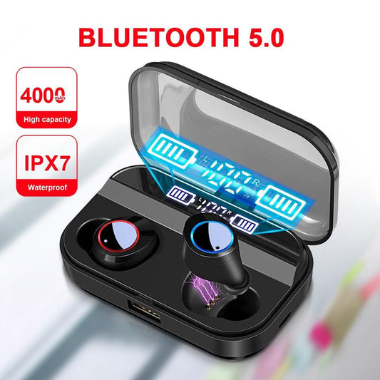 5.0 Bluetooth 9D Stereo Earphone Wireless Earphones IPX7 Waterproof Earphones 4000mAh LED Display Power Bank Touch Earbuds (AH1)((RS8)
