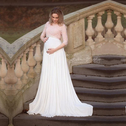 Beautiful Baby Shower Dress - Maternity Jersey Long Dresses - Pregnancy Photography Lace Joint Long Dress (F5)(Z8)(Z6)(2Z1)(7Z1)