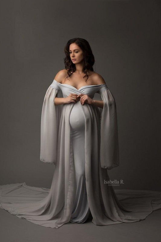 Pregnancy Photography Jersey Stretchy Dress -Baby Shower Long Dresses - With Cape Fitting - Maternity Maxi Gown (1Z1)(7Z1)(4Z1)(3Z1)(2Z1)(Z6)