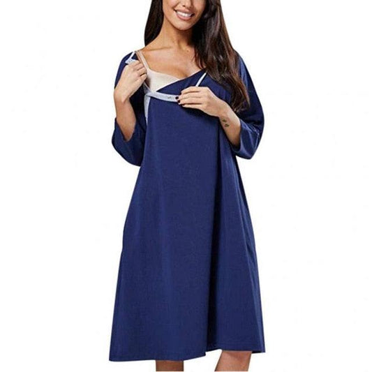 Maternity Labor Gown Nursing Baby Breastfeeding - Nightdress Pregnancy Dress - Maternity Cotton Nightgown Nursing Cover (Z7)(Z6)(2Z1)(6Z1)