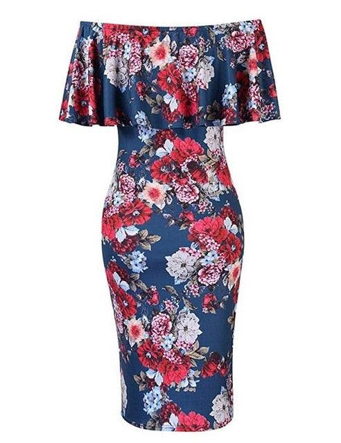 New Maternal Ladies Off-the-shoulder Print Versatile Slim Pregnancy Dresses - Flower Color Casual O-Neck Dress (D5)(Z7)(Z9)(1Z1)(3Z1)(5Z1)(7Z1)