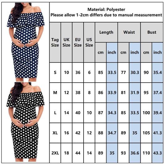 Great Polka Dot Ruffle Maternity Dresses - Off Shoulder Summer Pregnancy Dresses- Ladies Short Sleeve (1U5)(Z7)(Z9)(3Z1)