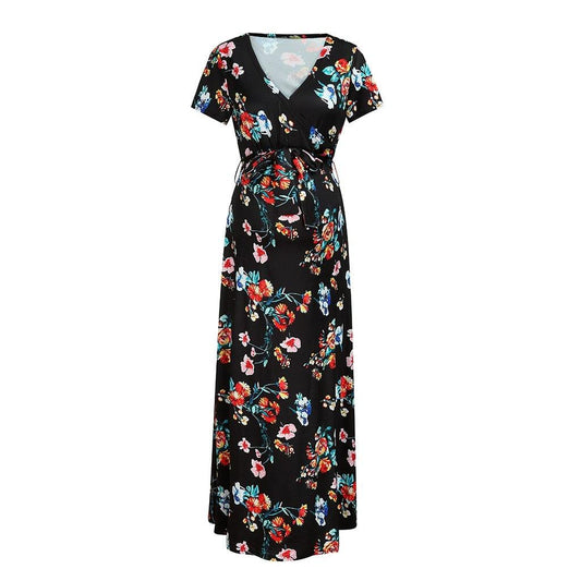 Gorgeous Maternity Dresses -Pregnant Short-sleeved V-neck Floral Printed Chiffon - Ladies Bohemian Clothes Plus Size (5Z1)(Z7)(Z9)(F5)