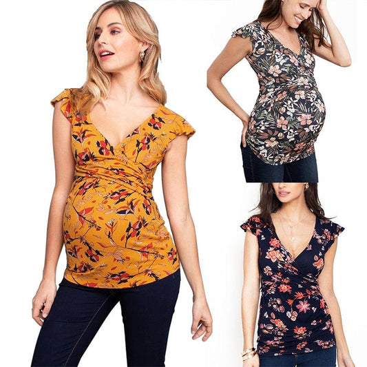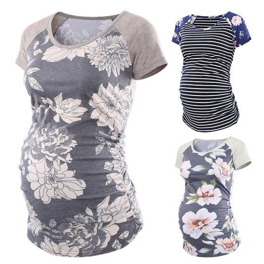 Trending Maternity Clothing - Breastfeeding Clothes -Causal Floral Printed Pregnant Shirt Tees - Summer Pregnancy Tops (Z1)(F4)