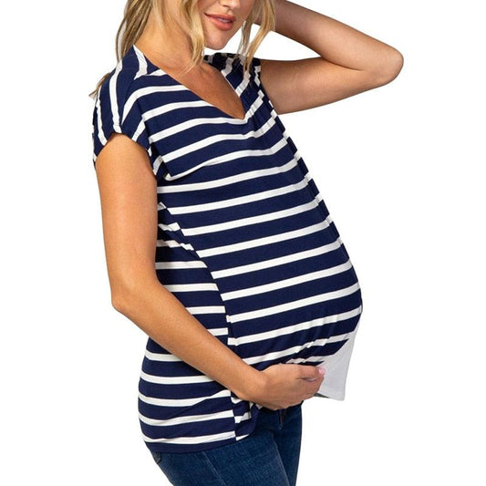 Unique Women Pregnant T-shirt - Maternity Casual Stripe Clothes - Pregnant Summer Nursing Tops - Breastfeeding Clothing (Z1)