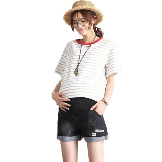 Summer Cotton Maternity Clothing Denim Short - Mother Jean Pants - Pregnant Women Elastic Waist Jeans (D4)(Z2)