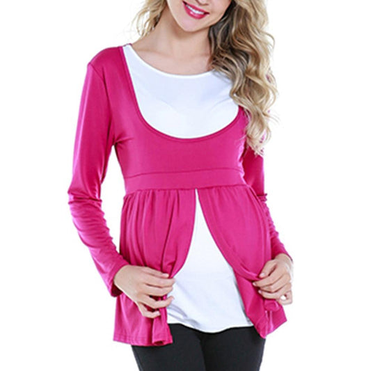 Great Women's Long Sleeve O Neck Maternity Nursing Tops - Pregnant Women Breastfeeding Blouse (1U4)(Z1)