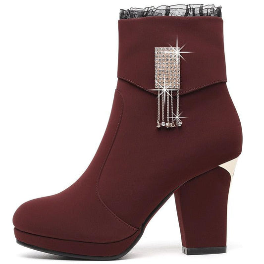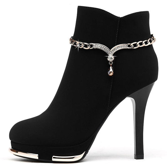 Cute Women Boots - Fashion Style Ankle Booties - Zipper Diamond Chain - Excellent Quality (BB1)(BB2)(CD)(WO4)