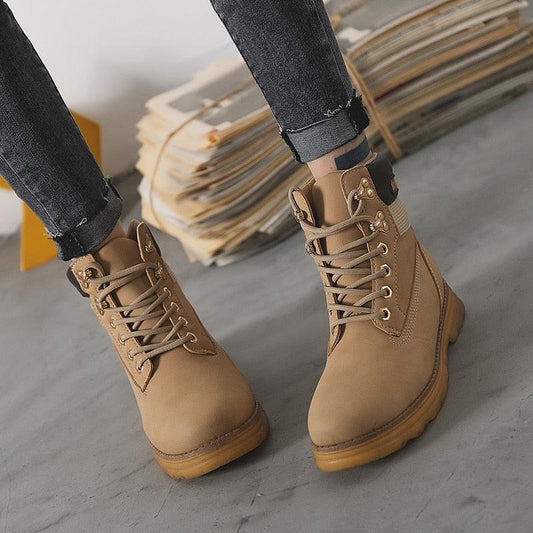 Beautiful Women Boots - PU Leather Ankle Boots - Round Toe Rubber Women Lace Up Platform Boots (BB1)(BB5)
