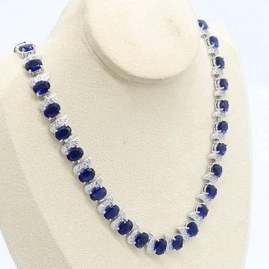 Classic Silver Color 45cm Necklace - Women Blue Black Semi-precious Jewelry (5JW)