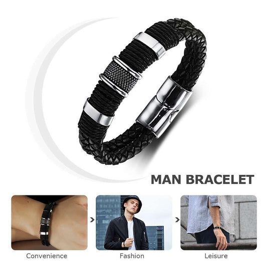 Classic Wide Weave Wristband Leather Bracelets - Charm Vintage Men's Bracelet (2U83)