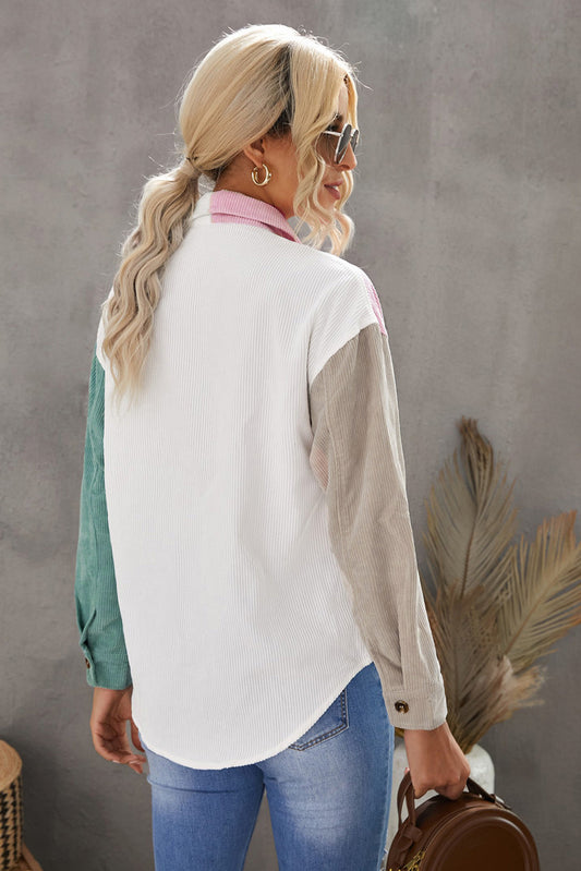 Color Block Button Front Shirt with Pockets