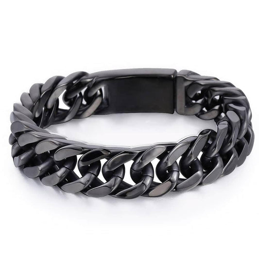 14mm Big Wide Heavy Chain Cut Double Curb Link Bracelet (2U83)
