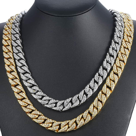 14mm Men's Necklace - Miami Curb Cuban Chain - Paved Rhinestones CZ Rapper Necklace (2U83)