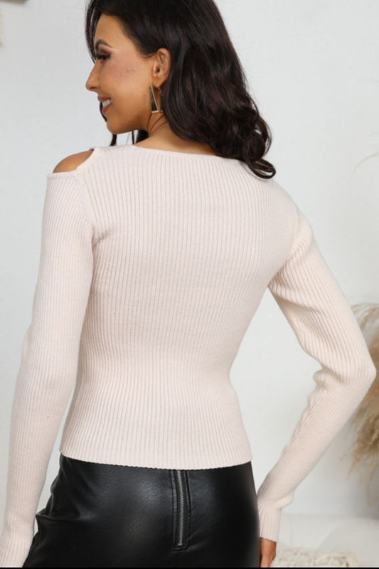 Cutout Split Flare Sleeve One-Shoulder Dress