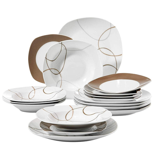 18-Piece Ceramic Porcelain Kitchen Dinner Plates Set -Tableware Set with Dinner Plate,Dessert Plate,Deep Soup Plate (AK7)(1U61)