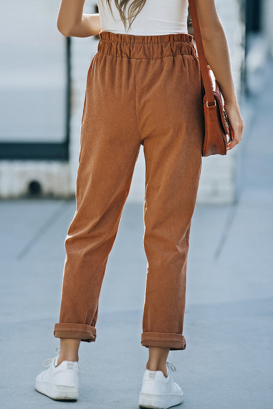 Drawstring Waist Corduroy Pants with Pockets