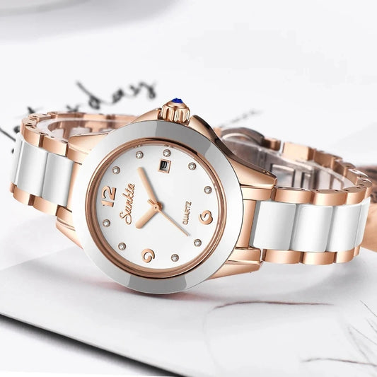 Fashion Women's Ceramic Wrist Watch, Dress Watches, Stainless Steel, Waterproof
