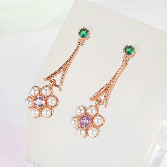 Gorgeous 925 Sterling Silver Drop Earring - Women Pearl Flower Amethyst Gemstone Rose Plated Fine Jewelry (2JW2)