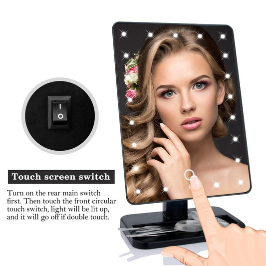 22 LED Lights Touch Screen Makeup Mirror Professional Vanity Mirror Beauty Adjustable Countertop 360 Rotating Desktop Mirror (M5)(1U86)