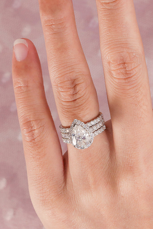 3-Piece 14K White Gold Pear Shape 2.5 Carat Moissanite Ring Set