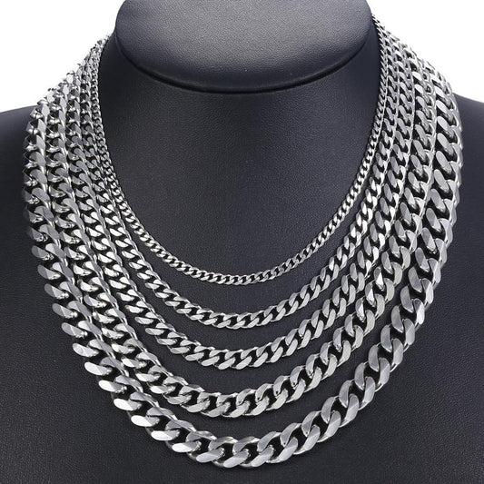 3-11mm Men's Curb Chain Necklace - Silver Color Stainless Steel Curb - Punk Classic Jewelry (2U83)