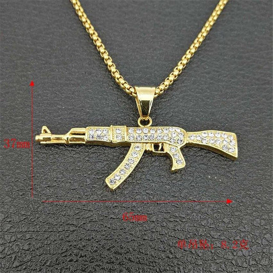 Hip Hop Iced Out Rhinestones Ak47 Gun Pendant With 4Size Chain Stainless Steel Gold Color Necklace Mj2