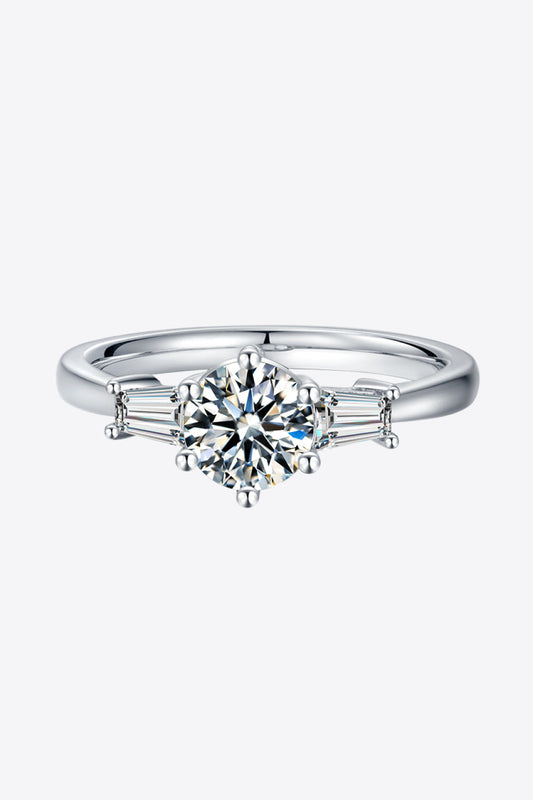 1 Carat Moissanite 925 Sterling Silver Three Stone Ring