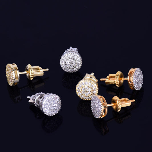 8MM Gold Color Small Round Stud Earring - Cubic Zircon Screw Earrings - Fashion Hip Hop Jewelry (2U81)