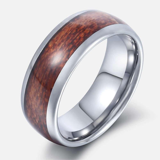 8mm Men's Brown Wood Inlay Silver Color Tungsten Carbide Band Ring Standard Fit Ring (2U83)