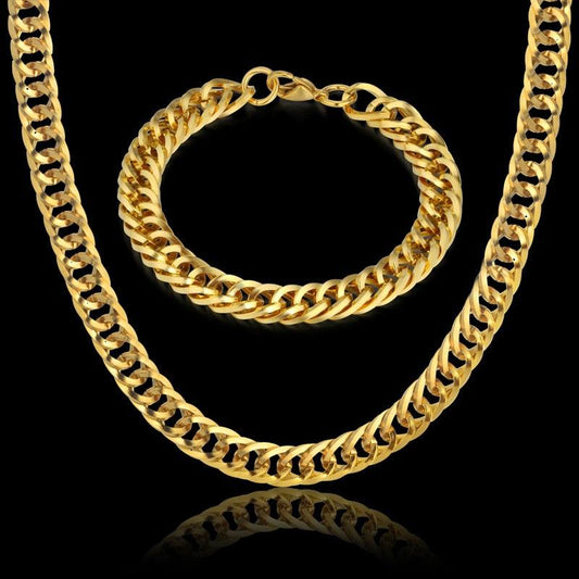 Newest Men's Thick Silver Color Chains - Necklace Bracelet Silver Color Chain Set (MJ4)