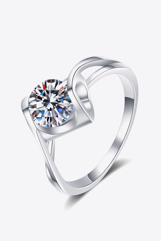 1 Carat Moissanite Rhodium-Plated Solitaire Ring
