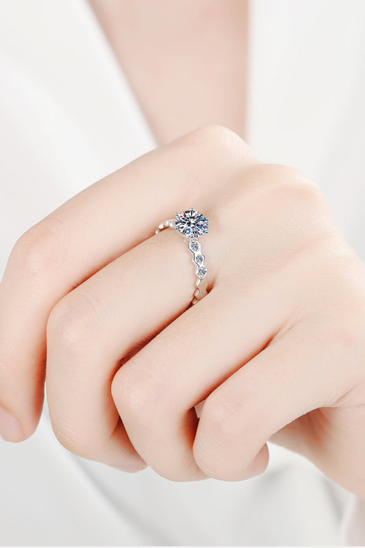 1 Carat Moissanite Rhodium-Plated Side Stone Ring