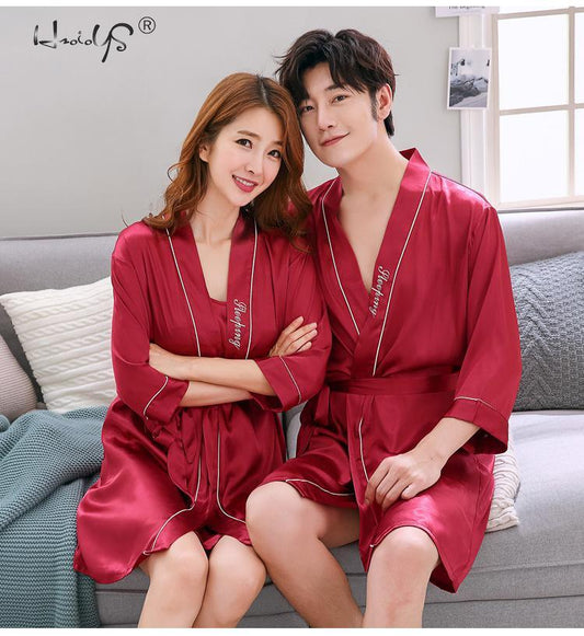 Amazing Silk Kimono Robe - Lovers Couple Nightgown Bath Gown Sleepwear - Large Nightwear Soft Bathrobe (D90)(ZP3)(ZP4)