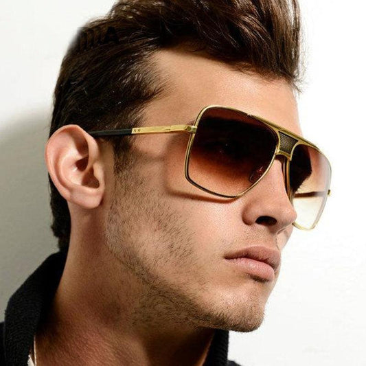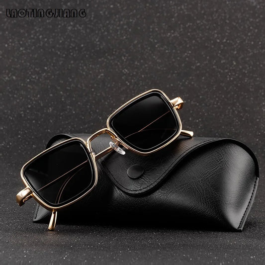Vintage Men Square Sunglasses - Designer Fashion Women Golden Sun Glasses UV400 (2U102)