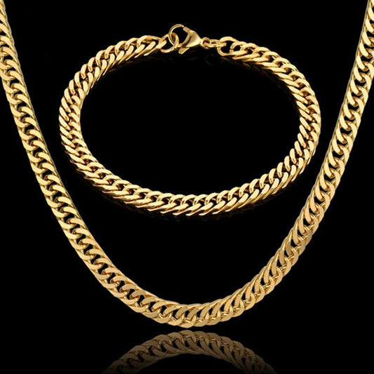 Vintage Jewelry Sets - 3 Color Hiphop Black Gun Gold Color American Antique Stainless Steel Jewelry Set (MJ4)