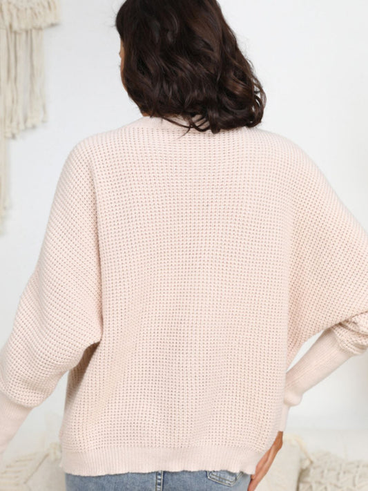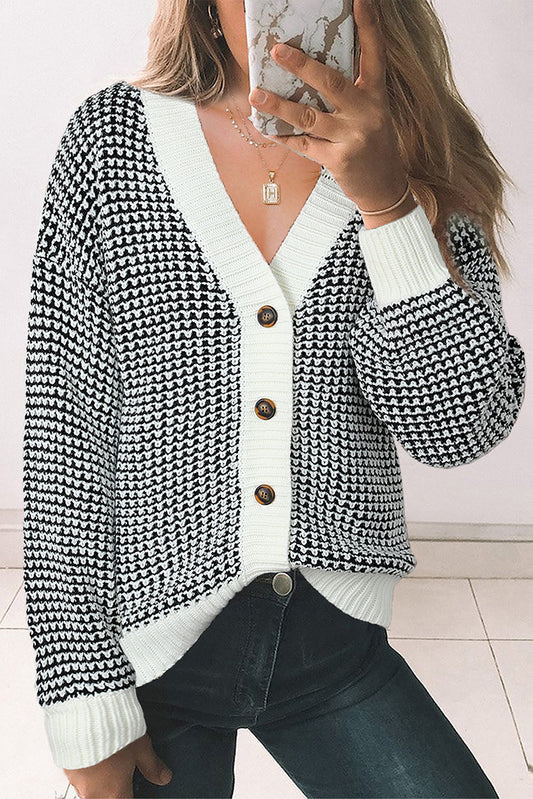 Waffle-Knit Drop Shoulder Button-Down Cardigan