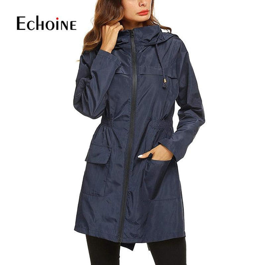 Waterproof Hooded Women Long Trench Coat - Classic Zippers Pockets Jacket - Business Casual Outerwear (3U23)(3U20)