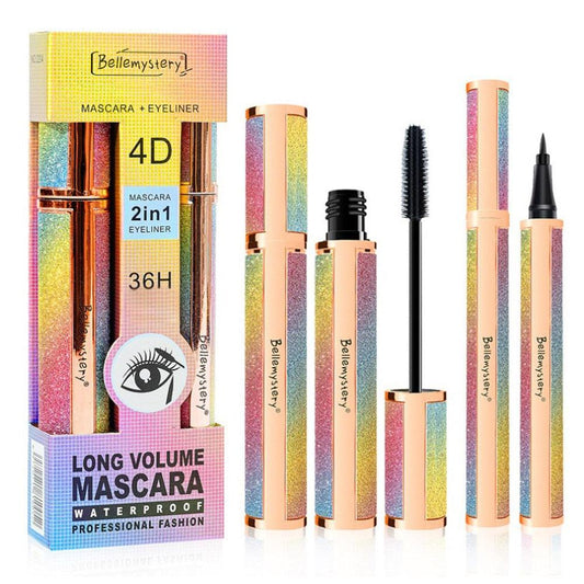 Waterproof Slender Mascara Eyeliner Set - Starry Sky Mascara 4D Silk Fiber Eyelash Long Thick Curling (D86)(M2)(M4)(1U86)