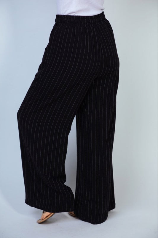 White Birch Finding Myself Full Size Striped Knit Pants in Black