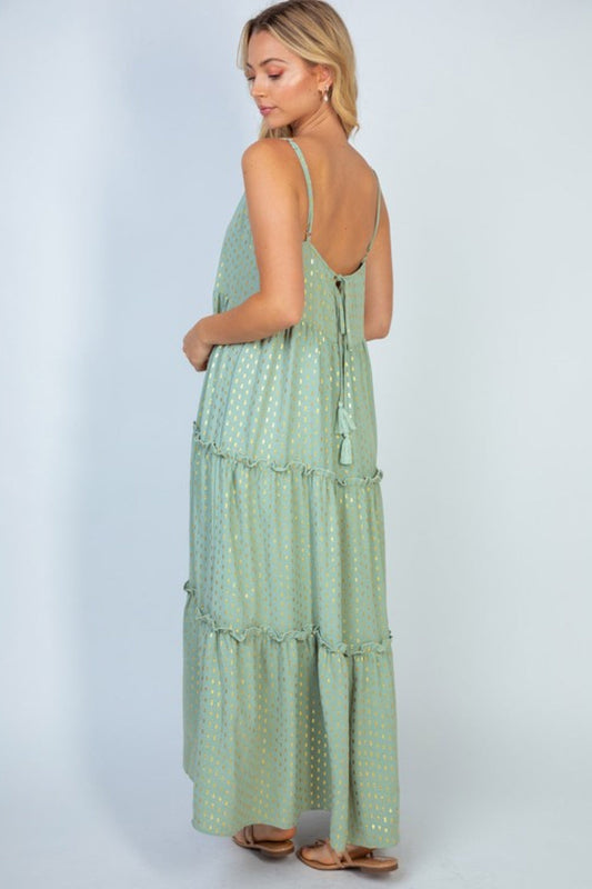 White Birch Golden Age Full Size Sleeveless Foil Tiered Dress