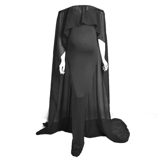 White Chiffon Set Long Cloak Dress - Ruffles Maternity Photography
