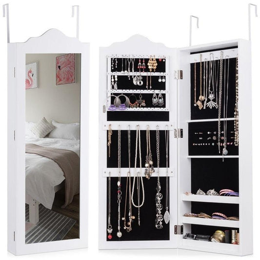 White Wooden Wall Mounted Mirrored Jewelry Cabinet Armoire Storage Box Make up Cosmetic Organizer (1FW1)(1U67)
