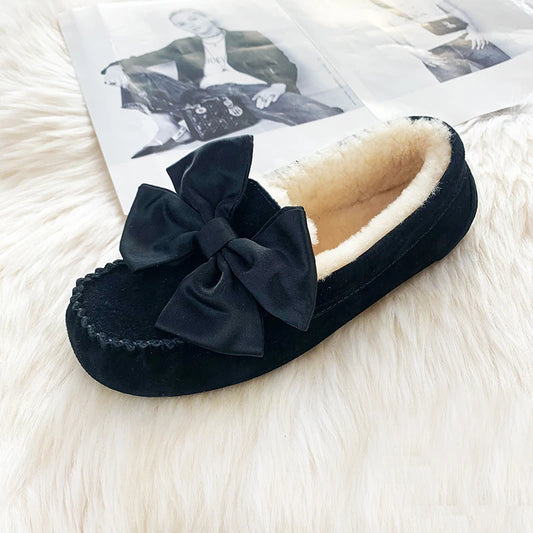 Winter Women 100% Natural Fur Wool Shoes Moccasins Soft Genuine Leather Loafers Leisure Flats Female Casual Footwear Women Shoes