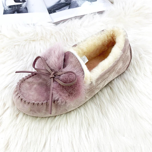 Women 100% Natural Fur Shoes Moccasins Loafers Soft Genuine Leather Leisure Flats Female Casual Footwear Size 34-44