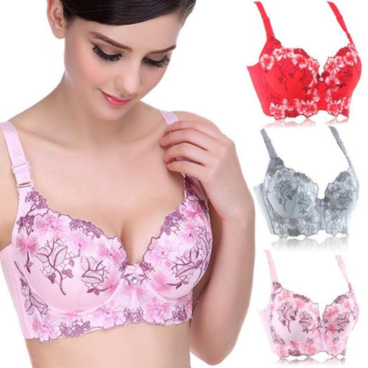 Women Elegant Underwire Push Up Bras - Floral Ladies Embroidery Flower Wedding Everyday Bras (2U27)