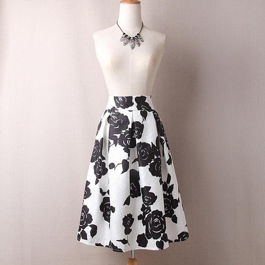 Women Peach Floral Print Elastic High Waist Pleated Skirt - Long Midi Skater Skirt - Spring New Summer Clothes